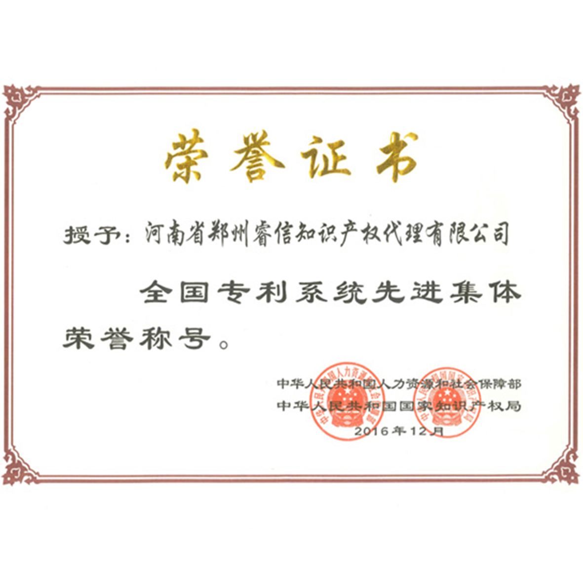 公司榮獲河南省知識產(chǎn)權(quán)系統(tǒng)先進(jìn)集體稱號。